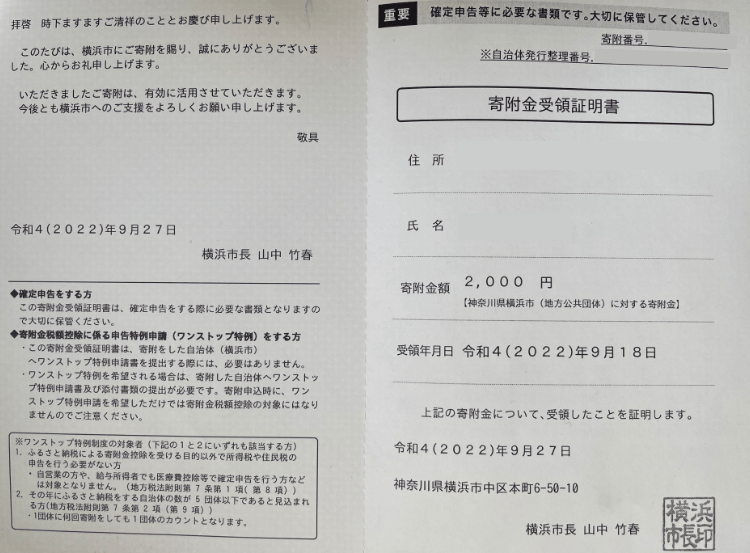 こちらを確定申告の際に寄付金控除の証明書としてご利用下さい。